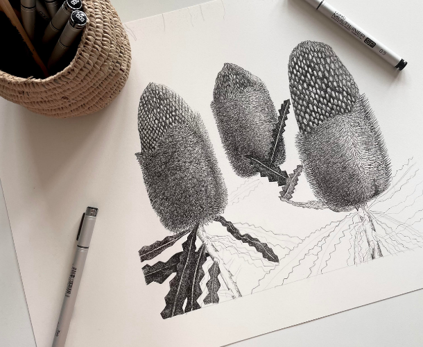 Eleanor's passion? Anything to do with art. You'll see her artworks everywhere from sustainably produced apparel to post-consumer recycled greeting cards. Just look out for 'Elk Draws', her signature which is derived from her initials.