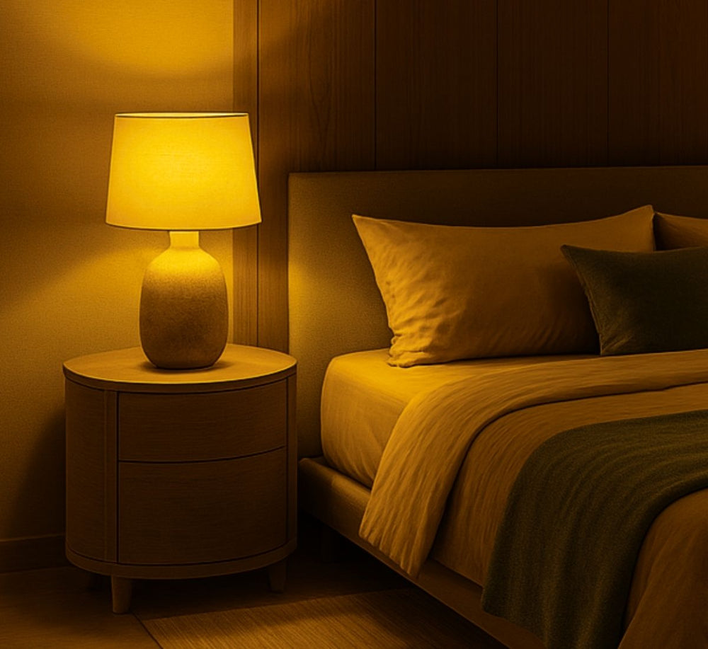 Use the amber bulb in bedrooms, living rooms, and bathrooms for a cosy evening glow, and reserve the red bulb for bedside lamps, bathrooms, and children’s rooms in the final hours before sleep. Both are flicker-free, gentle on the eyes, and crafted to support better sleep and wellbeing throughout the home.
