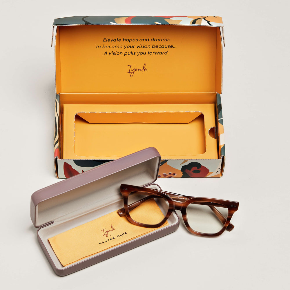 The Extras:Each pair comes packaged in a limited edition outer box designed by Iyanla, with a limited edition cleaning cloth and a sturdy glasses case