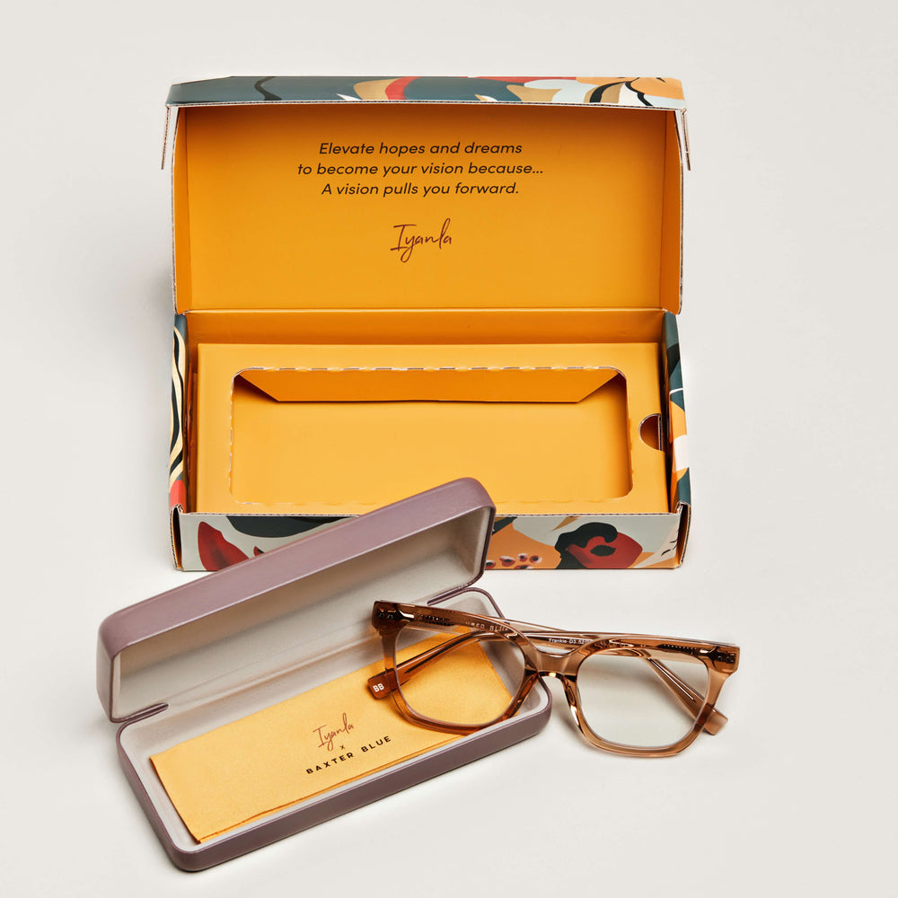 The Extras:Each pair comes packaged in a limited edition outer box designed by Iyanla, with a limited edition cleaning cloth and a sturdy glasses case
